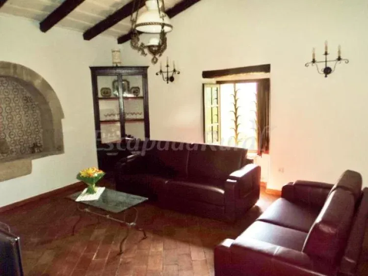 Vivienda compuesta de un gran porche de entrada, amplia cocina-comedor con nevera, lavavajillas, microondas, tostadora, lavadora, señorial sala de estar con chimenea de leña, TV via satélite, dos dormitorios dobles, una suite con baño, un baño común. (Superficie construida: 115 m2). Puede albergar hasta 6 personas. Con acceso a piscina de 20 x 4 m.