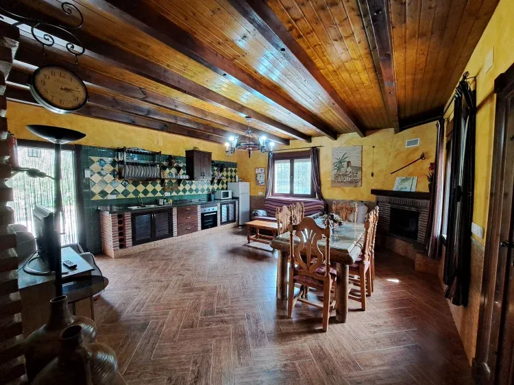 Dispone de comedor- cocina con chimenea, en esta hay vitrocerámica, horno y frigorífico