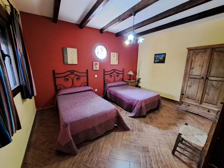 La casa Azahar dispone de dos dormitorios,uno con dos camas de 105cm y el otro con cama de matrimonio de 150cm que dispone de aire acondicionado con bomba de calor.