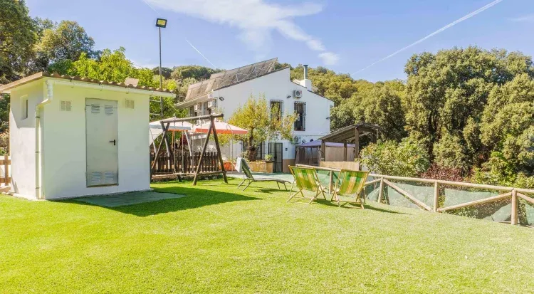En nuestra casa pueden encontrar tranquilidad y la paz que transmite un enclave privilegiado donde se encuentra la casa, un bosque de encinas de 40.000 m2, su magnífico jardín con iluminación nocturna y sus vistas a la sierra. Sus caminos y rutas espectaculares para hacer senderismo harán que nuestros clientes disfruten de la casa y su entorno al máximo.