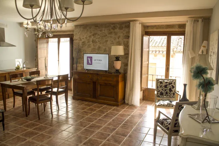 Nuestros modernos apartamentos Alojamientos Victoria se encuentran en la primera planta de un edificio histórico del siglo XV de singular arquitectura; el mismo edificio que alojaba a los primeros turistas ya en los años 40 en la famosa Pensión urbana.