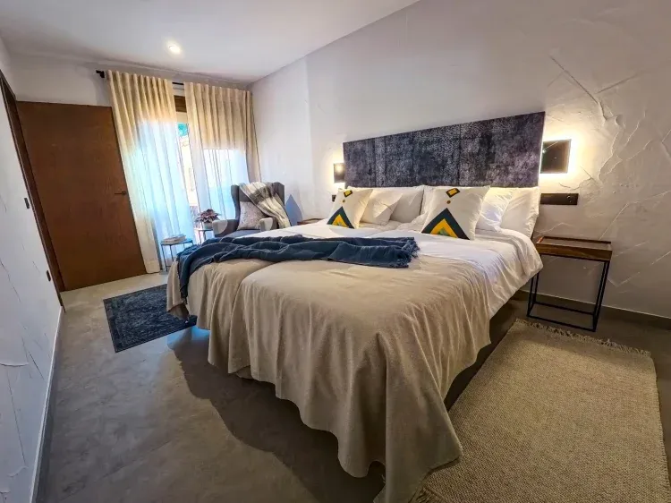 Además cuenta con sistemas de calefacción para, que en los meses más fríos, encuentres la calidez que necesitas, y por si fuera poco, la gran chimenea del salón te ayudará a crear ese aura especial que fusiona la luz del fuego con nuestra decoración totalmente integrada en el paisaje que nos rodea. Estamos deseando que compartas todas estas sensaciones con nosotros. Te esperamos en Las Horneras de Cobeta.