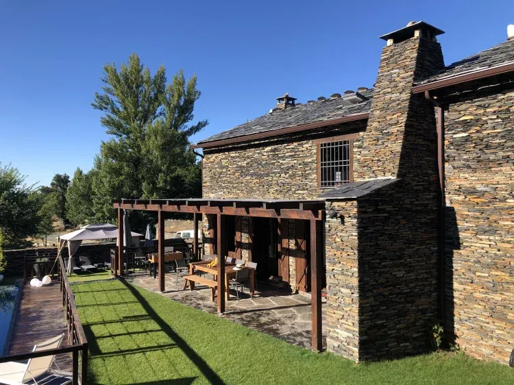 La casa rural, con capacidad para 20-22 personas, cuenta con un total de 8 dormitorios, 6 baños, 1 aseo, 1 salón comedor, 1 salón comedor con dormitorio, 2 cocinas, 2 terrazas, jardín, spa, piscina y zona ajardinada de ocio distribuidos en 2 módulos adosados: la Casona y el Apartamento, que pueden alquilarse conjuntamente o de forma independiente.