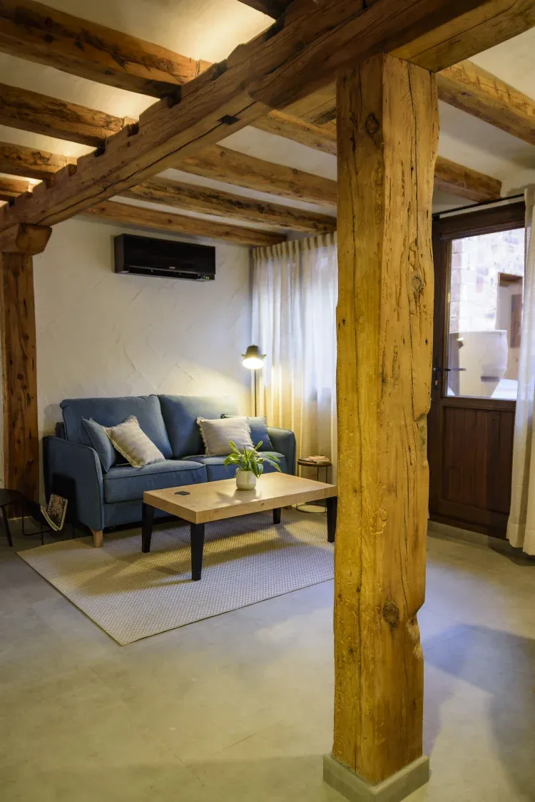 El apartamento Andrea forma parte de nuestro exclusivo alojamiento Las Horneras de Cobeta. En él, la historia se encuentra con la modernidad. Construido con piedra típica de Cobeta y acero corten, cada uno de nuestros cinco apartamentos y el restaurante rinden homenaje a «Las Horneras de Cobeta». Aquí, el horno de leña del restaurante no solo es un tributo, sino también el corazón de una experiencia culinaria inigualable.
