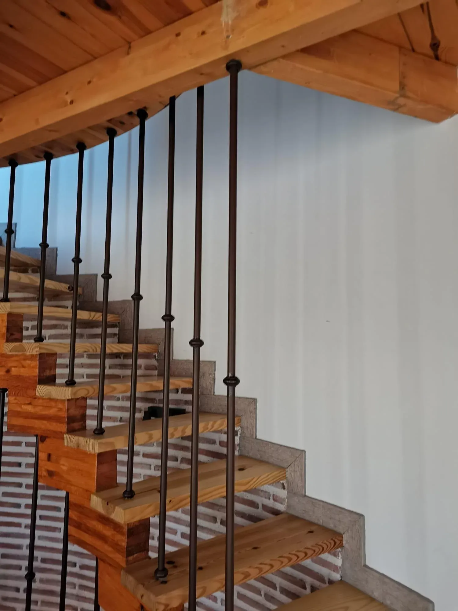 El acceso a la segunda planta con otra escalera situada encima de la anterior nos da paso a una segunda habitación, dispone de cama de 0,90 y sillón cama además de un aseo y una terraza desde donde se divisan el Lago, La sierra y el pueblo de Palmaces de Jadraque.