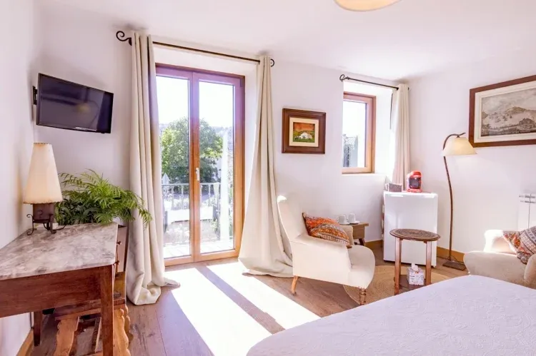 La habitación está situada en nuestra casa orientada al Suroeste, la habitación es tipo suite (23m2), con baño completo incorporado, terraza, muy luminosa, mesa de trabajo con conexión directa a internet por fibra o wifi. La entrada de la habitación, con llave, se sitúa a 7 escalones de la puerta principal.