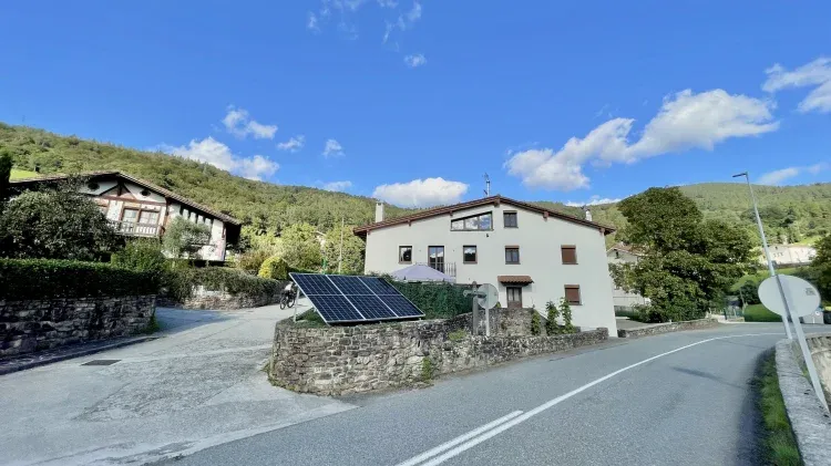 Viniendo por el Norte (Francia, Bilbao, San Sebastián...) deben de llegar hasta Andoain tomando siempre dirección Iruña-Pamplona, en Andoain continuar por la A-15 hasta la salida 141, continuar por la GI-2130 y a 1km, en la misma carretera a la derecha esta nuestra casa y su plaza de parking. Al borde de la carretera en nuestra casa hay paneles solares.