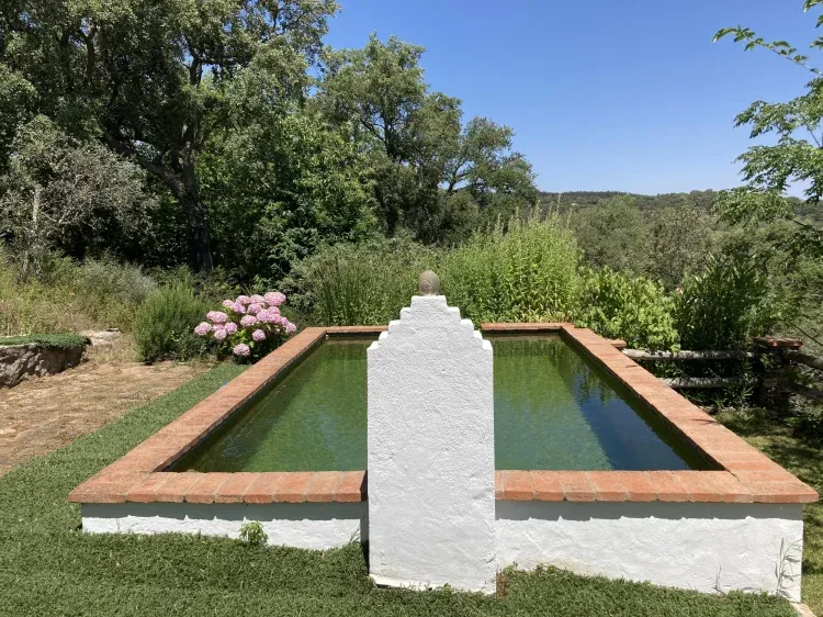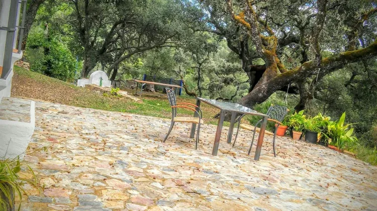 Está situada en un entorno de castaños, alcornoques, encinas y huerta, que la hacen un lugar ideal para el descanso.