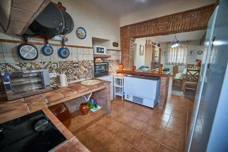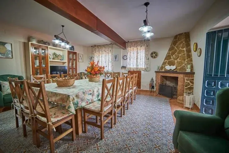 La vivienda, de reciente construcción, conserva el estilo tradicional de la arquitectura rural de esta comarca. Consta de 10 dormitorios (una de ellos con cuna), tres cuartos de baños y capacidad para 17 personas. La casa presenta un gran salón con chimenea (incluye leña en invierno), comedor, cocina completamente equipada con barra americana, y un estupendo porche soleado donde sentarse a descansar y respirar el aire de la Sierra.
