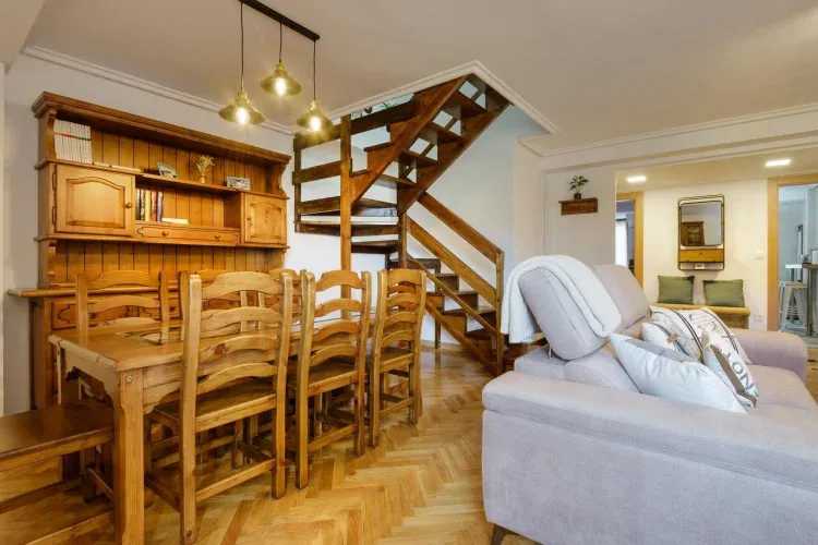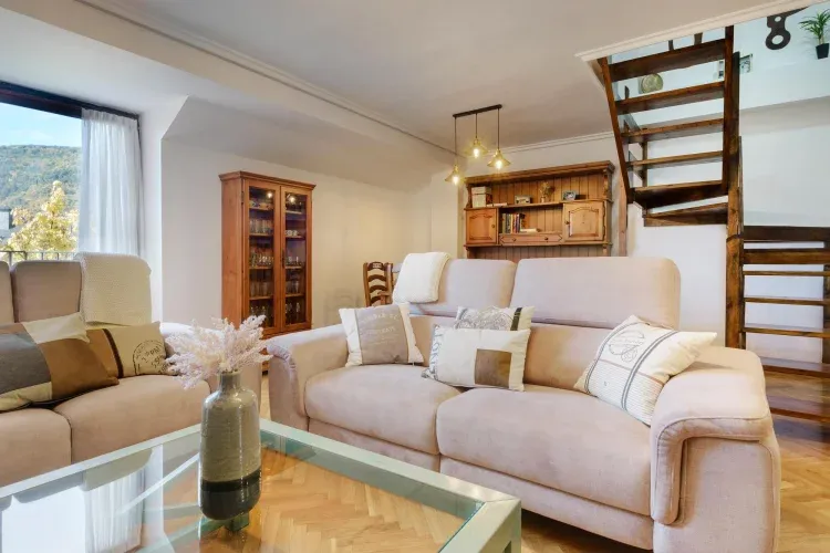 Nuevo dúplex recién reformado en Biescas, Valle de Tena. Distribuido en dos plantas, la primera planta cuenta con un amplio salón con chimenea y balcón con vistas al jardín de la urbanización.