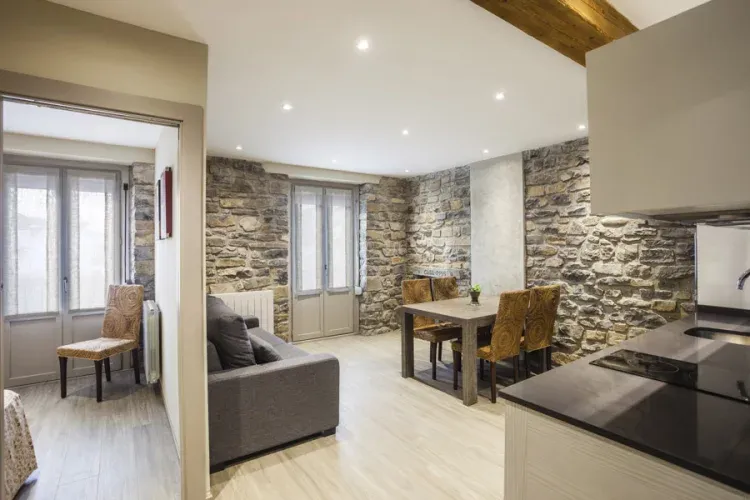 Reservamos un apartamento recientemente reformado muy bonito, bien equipado y muy limpio, aunque tambien dispone de habitaciones, que cuando llegamos, estaban todas ocupadas. El dormitorio es abohardillado en la planta superior, junto con el cuarto aseo con ducha. En la planta inferior el salon con cocina americana. Todo muy nuevo. El dueño muy amable, te orienta perfectamente de lo que mas puede interesar visitar, en funcion de lo que busques. Veniamos para 2 noches y nos quedamos 4. No fueron mas porque el tiempo empeoro. Totalmente recomendable si buscas tranquilidad y un punto estrategico para visitar la zona. Lo unico que no nos gusto es que el TV se encuentra en la parte inferior y somos de ver la TV acostados en los lugares donde vamos... y la almohada. Nos gusta mas 2 almohadas individuales que una grande. El resto, incluyendo la atencion de su dueño.... perfecto