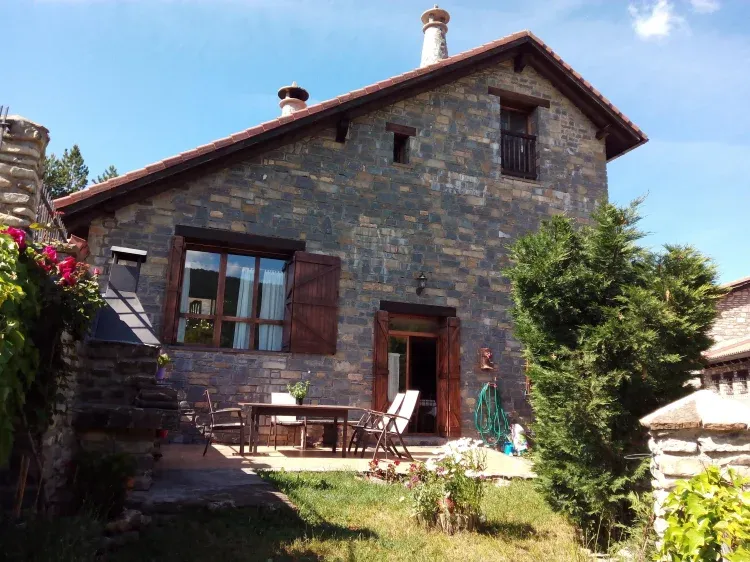 El jardín cuenta con barbacoa y amplia terraza con excelentes vistas a la montaña, al Valle y al Río Ijuez.