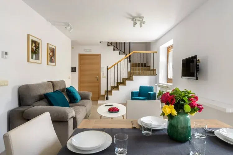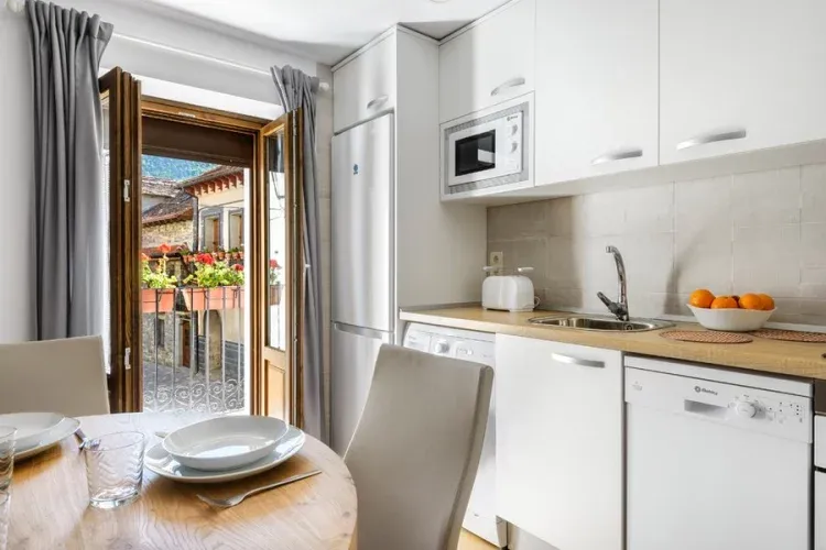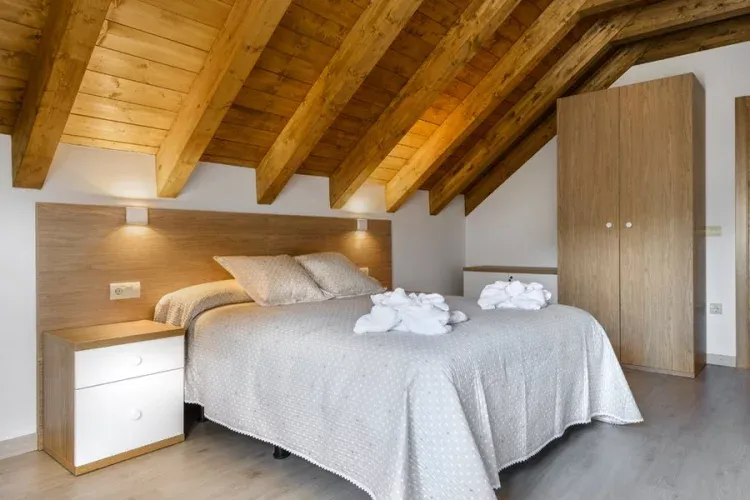 Es un apartamento que reúne todas las comodidades para pasar unos días de descanso y hacerlo con garantías de confort y autonomía. Está compuesto por un salón y una hermosa cocina totalmente equipada (nevera, lavadora, lavavajillas, microondas, tostadora, batidora y plancha), una habitación de matrimonio en la misma planta y un baño; en la parte de arriba hay otro baño y dos habitaciones abuhardilladas muy amplias, una de matrimonio y otra con dos camas individuales, con acceso a un balcón con bonitas vistas.