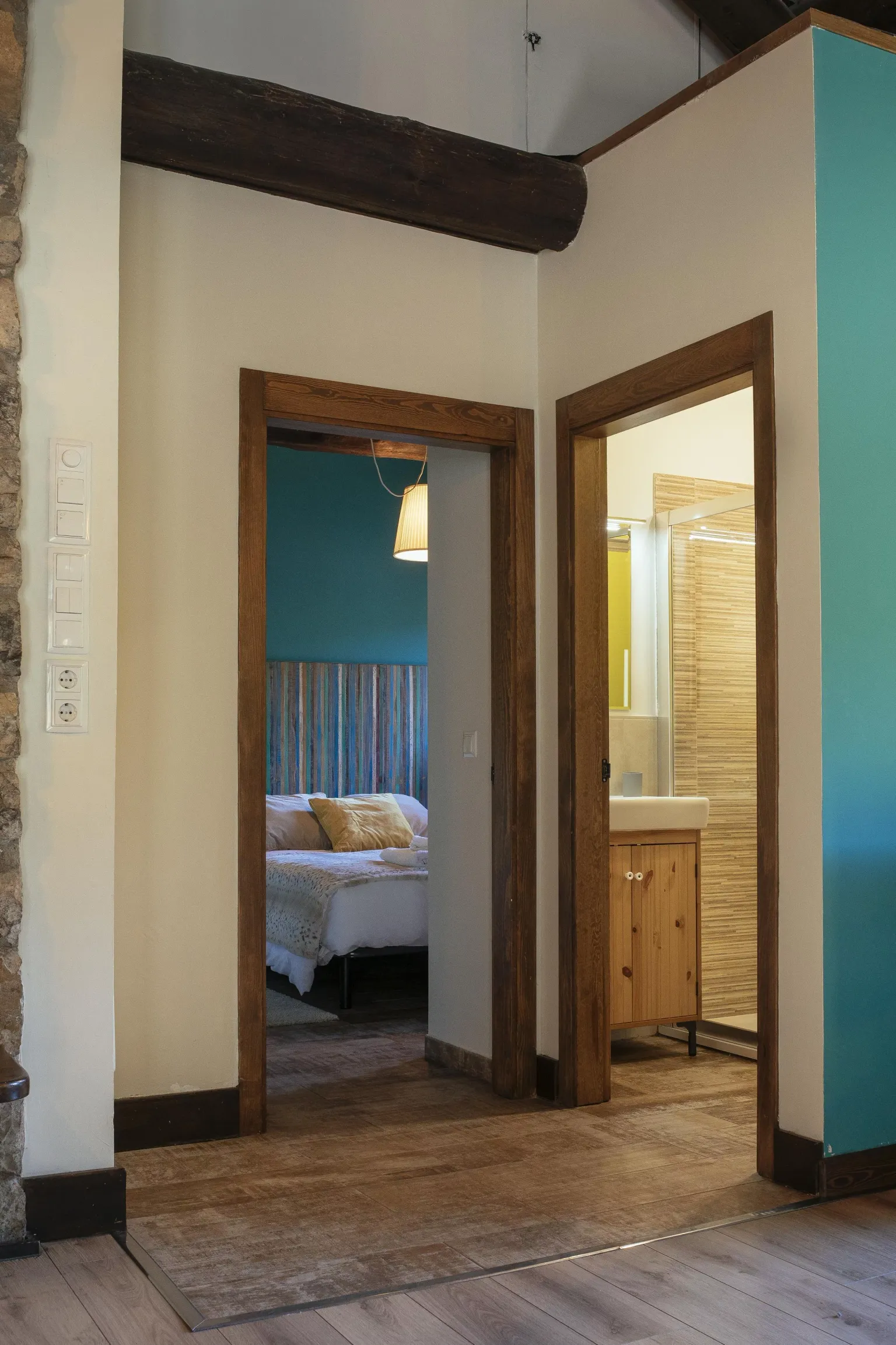 La borda se compone de 2 habitaciones, una de llenas con cama de matrimonio de 1,50 x 2,00 metros y la otra habitación muy amplia donde hay una cama de matrimonio de 1,50 x 2,00 metros y dos camas individuales de 0,90 x 1,90 metros. Todas las habitaciones tienen su baño individual, totalmente equipado con toallas y amenities.