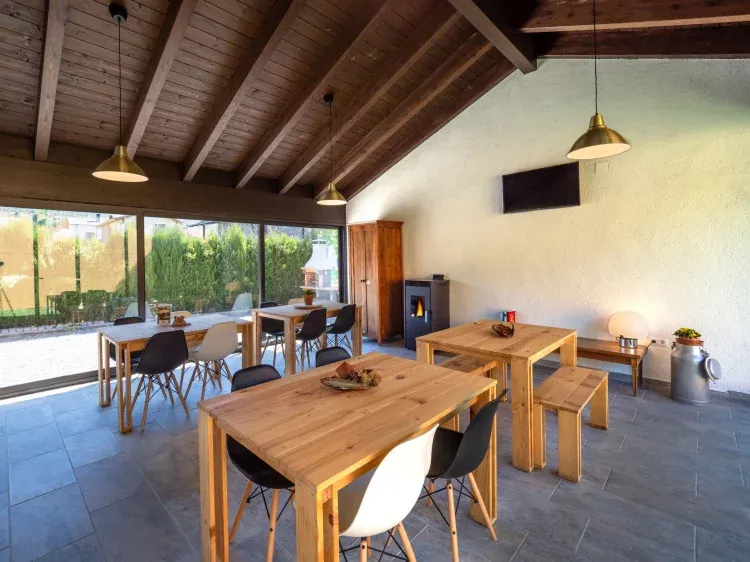 Disponemos de un amplio salón con capacidad para unas 30 personas donde nuestros clientes pueden compartir buenos ratos en grupo. Al lado del salón se encuentra la zona de barbacoas para poder comer o cenar en un ambiente relajado.