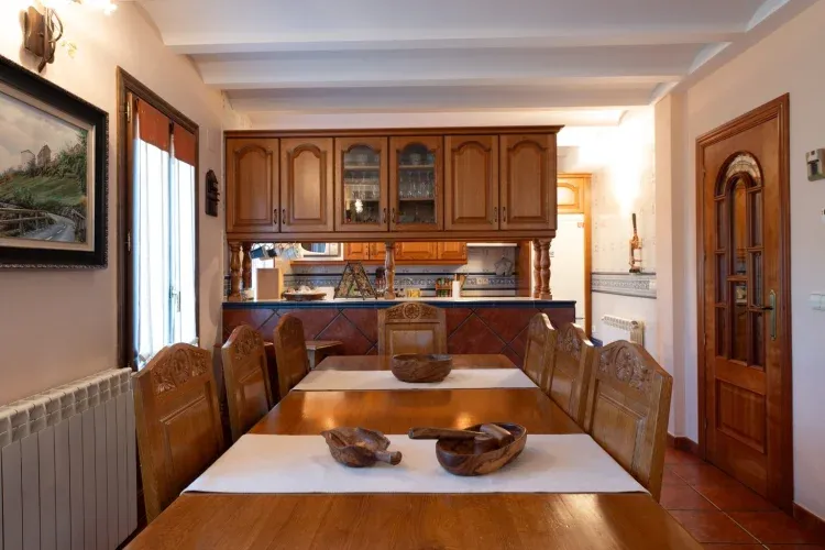 Cuenta con tres baños completos que garantizan comodidad para todos los huéspedes. La zona de día incluye un acogedor salón con chimenea, cocina totalmente equipada y un comedor perfecto para reuniones. Además, la vivienda ofrece una terraza con vistas, ideal para relajarse y disfrutar del entorno.
