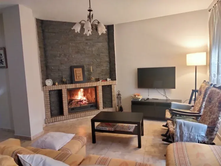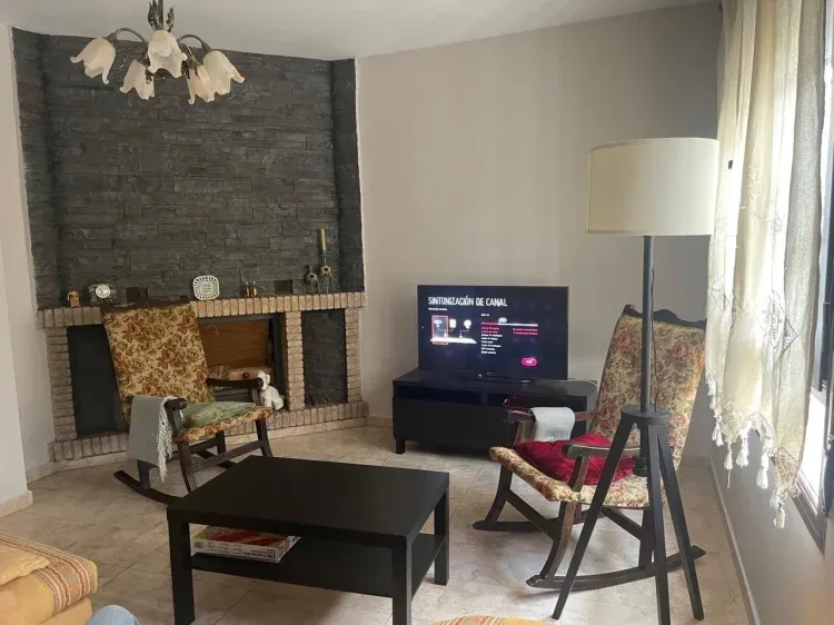 Cuenta con comedor y sala de estar con televisión y chimenea. También cuenta con un gran patio con barbacoa para el disfrute de las noches de verano, el patio sirve de parking privado