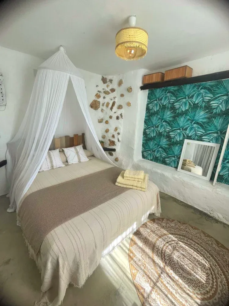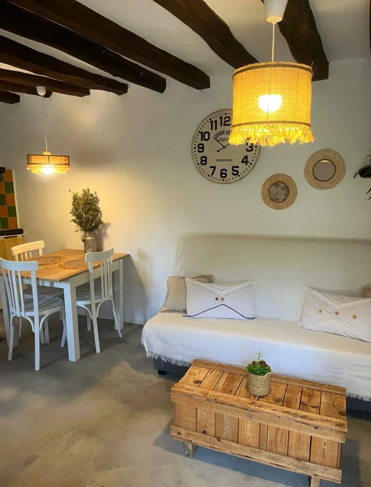 Gracias a las características propias de su construcción, con gruesas paredes exteriores y parte interior semicueva, podrás disfrutar de una temperatura dentro de la estancia muy agradable, principalmente en los meses de verano.