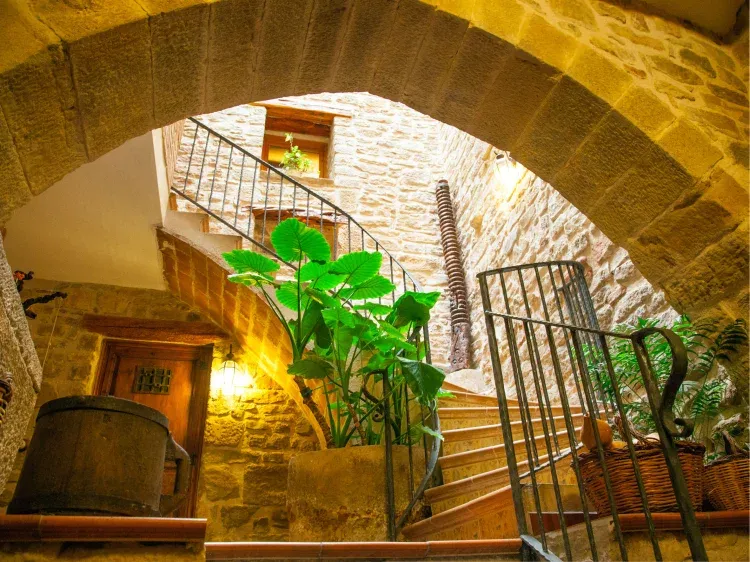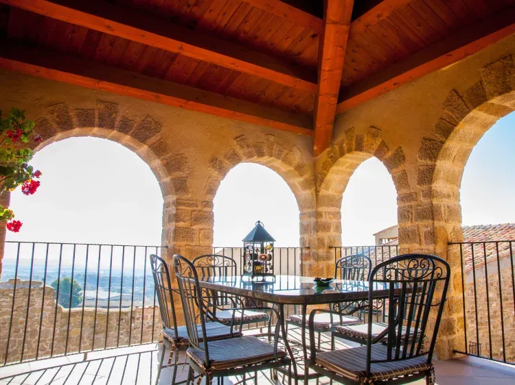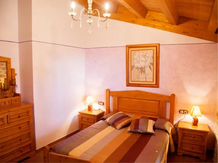 Dispone de 3 habitaciones dobles, 2 suites,4 platines, 2 baños completos, 1 spa, 1 sala comedor con chimenea,1 comedor con barbacoa, 1 terraza cubierta, 1 terraza mirador, 1 cúpula con observatorio astronómico, calefacción central, agua caliente con placas solares, ropa de hogar, cocina totalmente equipada. La piscina es municipal de acceso gratuito, el pueblo es de 22 habitantes.