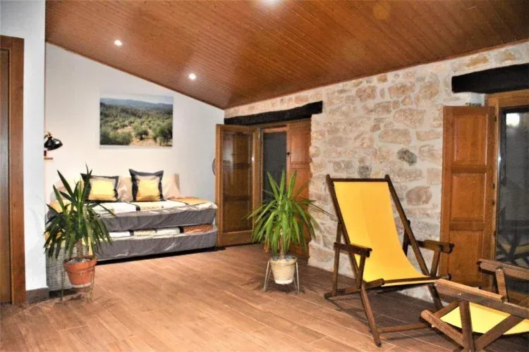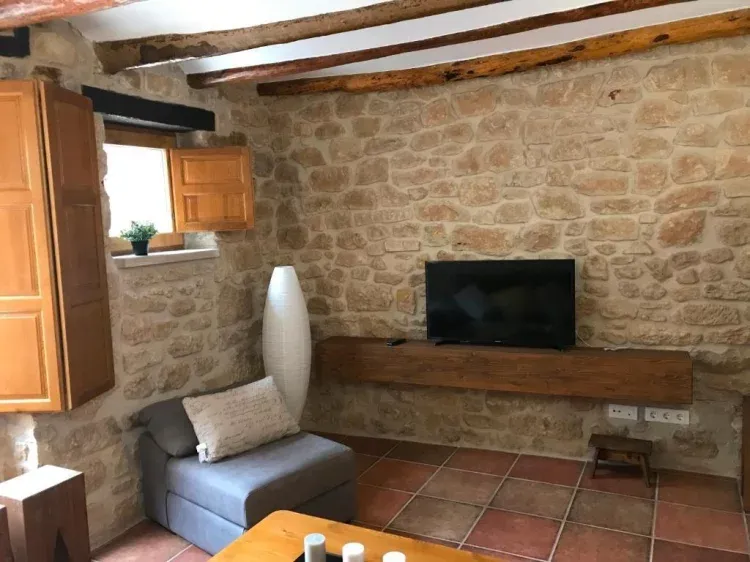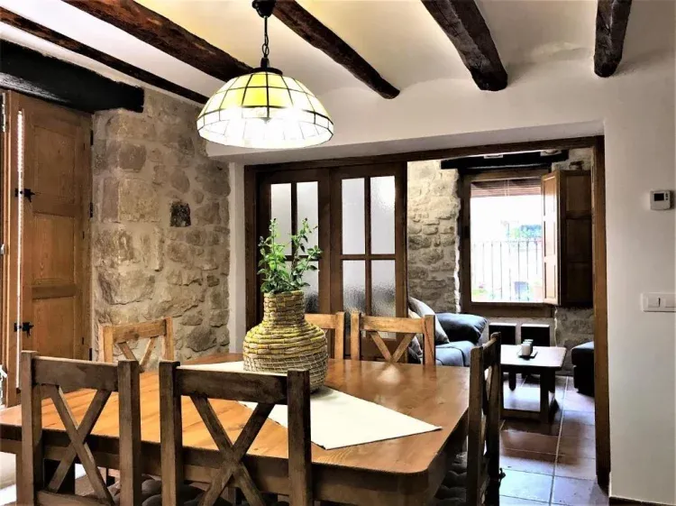 La casa ha sido recientemente rehabilitada al completo conservando la piedra picada original tanto de la fachada como de las paredes del interior. El techo mantiene las clásicas vigas de madera y la boveda de ladrillo.