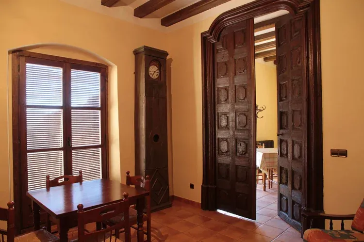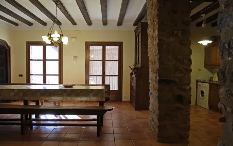 Tiene un gran comedor con chimenea, cocina, sala de estar, sala de juegos, terraza con barbacoa y un baño en el primer piso, seis habitaciones dobles y una triple todas con baño y una terraza con magnificas vistas al desfiladero de Collegats y la "Geganta dormida" en el segundo piso