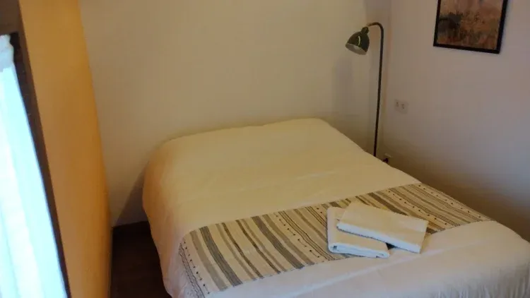 La casa dispone de baño, tres dormitorios en planta superior, dos pequeños dobles y uno con literas para alojar hasta 10 personas. Perfecto para parejas, familias o grupos de amigos