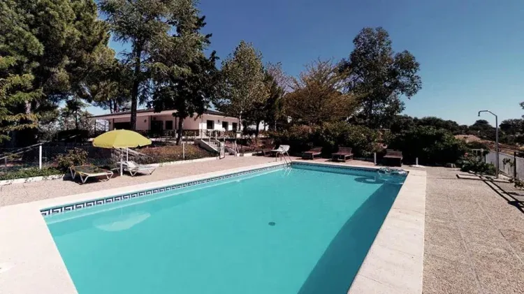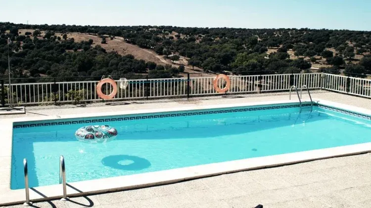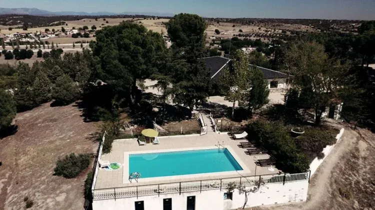 Rodeado de pinos y encinas, con bonitas vistas a la sierra de Gredos y Guadarrama. Piscina con solárium y mirador, cancha de baloncesto y campito de fútbol. Para fines de semana, y semanas. Completamente restaurado en 2008.
