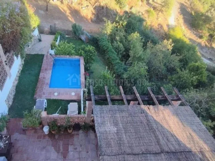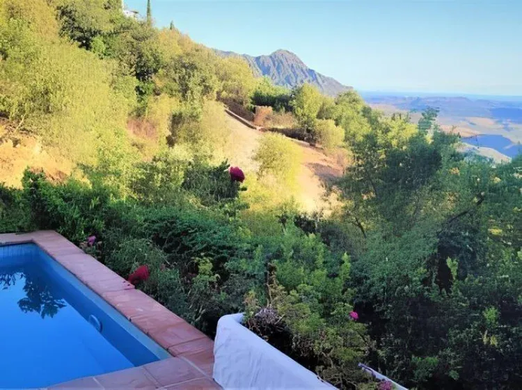 Cuenta con una gran terraza con zona de BBQ, comedor, espacio de chill-out, por ella se accede a la piscina y su área de jardín con tumbonas, fabulosas vistas al pueblo y al estrecho de Gibraltar.