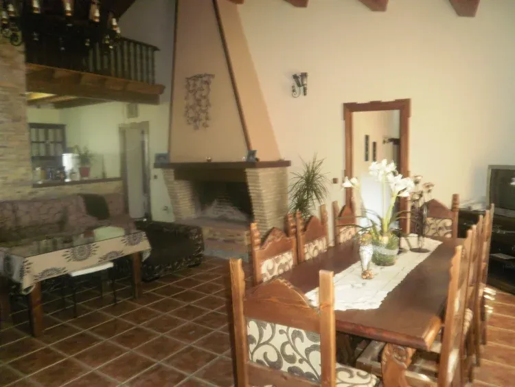 Finca Rural La Pastora cuenta también con una sala principal, lugar idóneo para el relax ya que esta cuenta con sofás, televisión y chimenea para los días más fríos. Asimismo, en la misma sala podemos encontrar una mesa para 8 comensales.