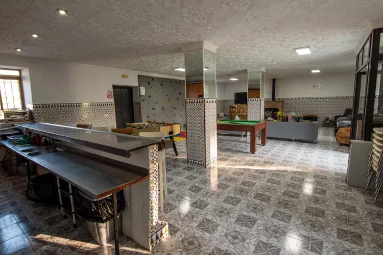 Este alojamiento dispone de una piscina grande, rocódromo, billar, mesa ping pong, parque infantil y casa muy cómoda, barbacoa, etc.