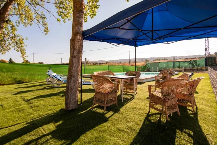 Es una casa rural enorme, donde aún siendo 16 personas no tuvimos en ningún momento problemas de espacio. También cuenta con una piscina amplia y una zona de descanso preciosa al lado de esta. Sin olvidarnos también de que cuenta con varias zonas para jugar (fútbol, pin pong, futbolin, billar...). Una pasada y encima una casa muy acogedora y fresca para esas noches calurosas. Sin duda alguna, ¡fue un completo acierto elegir esta casa!