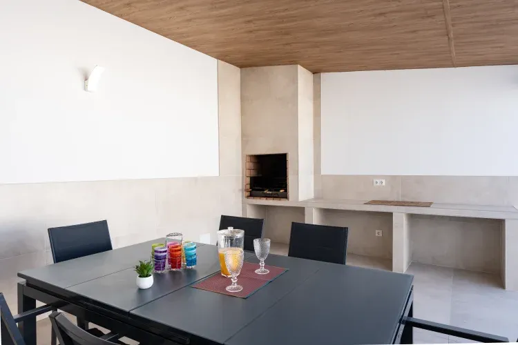 La cocina equipada con electrodomésticos de última generación, incluye nevera, microondas, horno, congelador, lavavajillas y todos los utensilios necesarios. Desde cafetera hasta exprimidor, la cocina está lista para satisfacer todas sus necesidades culinarias.
