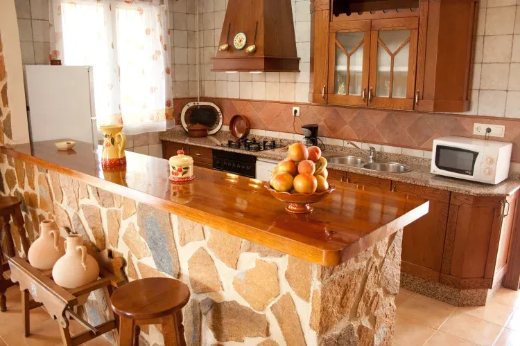 Está dotado de todas las comodidades: 4 habitaciones, salón comedor con chimenea, cocina totalmente equipada (frigorífico, lavavajillas, botellero, microondas, horno, encimera, barra...), un baño interior y otro exterior, barbacoa y horno exterior, piscina y parque infantil.