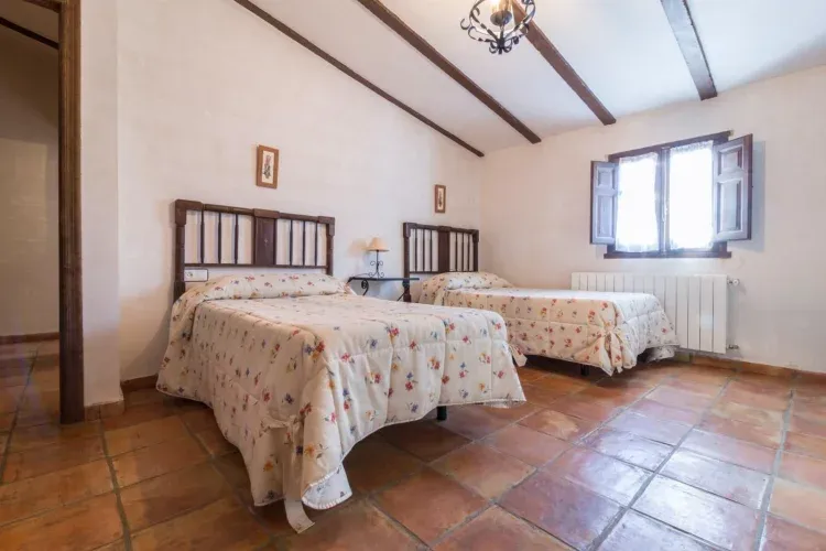Dispone de 2 habitaciones, 1 de ellas con cama de matrimonio y la otra con dos camas individuales, un baño, comedor, cocina, chimenea de leña y calefacción central.