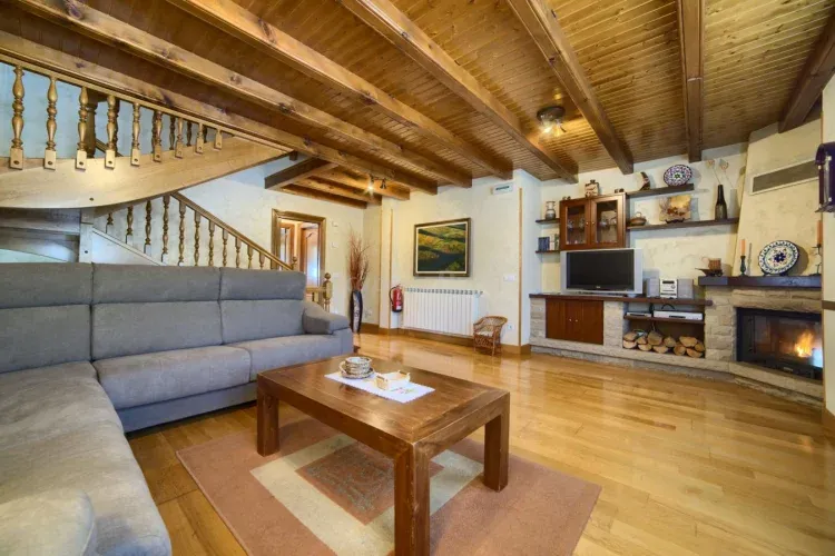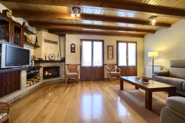La casa se divide en dos plantas. La primera cuenta con un amplio salón con chimenea, cocina-comedor totalmente equipada y un aseo. La segunda es toda abuhardillada y dispone de 4 habitaciones (2 dobles y 2 con cama de matrimonio) y 2 baños completos. Tiene excelentes vistas al pueblo y conexión a Internet. No se admiten mascotas.