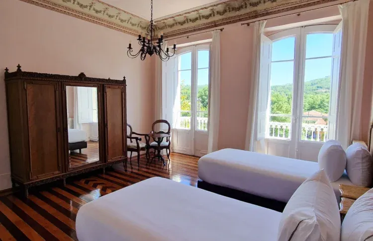 Casa Palacio de Esgos ubicada en el corazón de la Ribeira Sacra y a 19km de los manantiales de las Burgas se encuentra Casa Palacio de Esgos. Rodeada por naturaleza con amplios jardines, dispone de piscina exterior privada, barbacoa y balcones. Un auténtico refugio de paz y tranquilidad pensado para desconectar