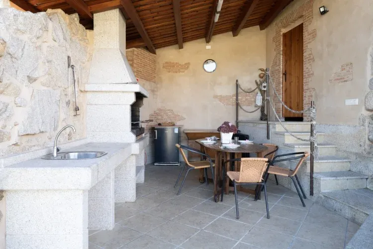 En cuanto a la decoración cabe reseñar que se recuperaron todos los muebles de la casa que dan el perfecto tono rústico. El porche cubierto, con vistas a la zona ajardinada, está decorado y ambientado por una fuente y los aperos de labranza típicos, una estancia perfecta para el descanso.