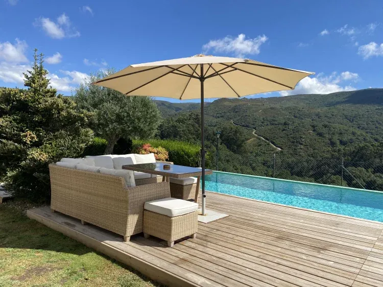 La Loba, Casa recién reformada en plena naturaleza, rodeada de playas fluviales y cataratas, y con unas vistas realmente incomparables. La Loba se sitúa en lo más alto de la parroquia de A Laxe, y su finca de casi 3000 metros goza de los más diversos rincones preparados con el mayor encanto, desde los cuales podrás disfrutar de unas vistas panorámicas a todo el paraje natural que la rodea.