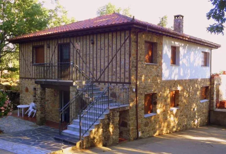 Ábaco es una casa de nueva construcción al estilo típico serrano con piedra y entramado de madera.