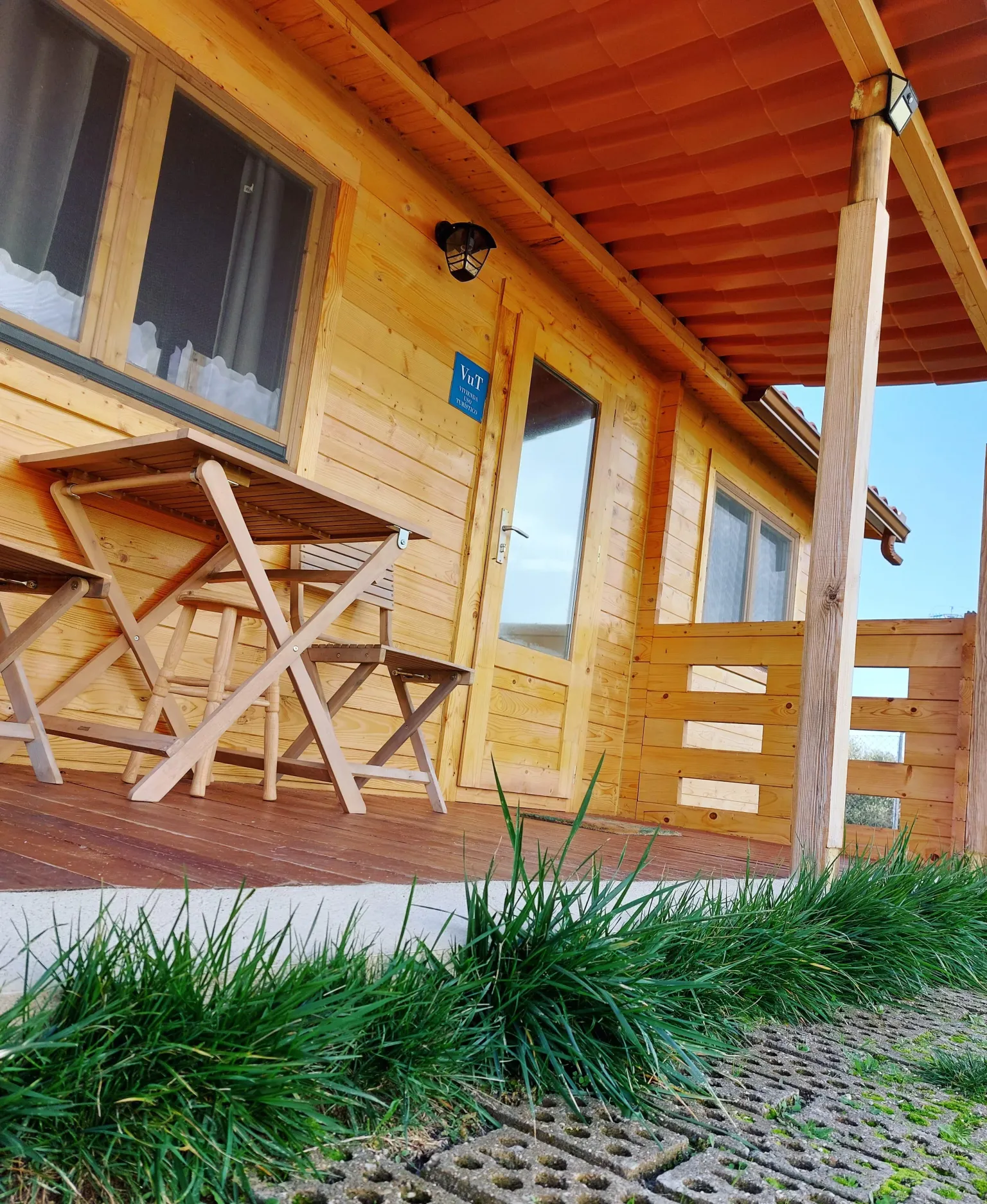 Ubicada en una parcela con acceso directo desde la carretera, en una zona tranquila de viviendas unifamiliares. Pueden moverse caminando o con el vehículo, hay grandes aceras para caminar por el pueblo. El aparcamiento se encuentra dentro del recinto vallado a pie de la cabaña, por la tarde le da la sombra al vehículo