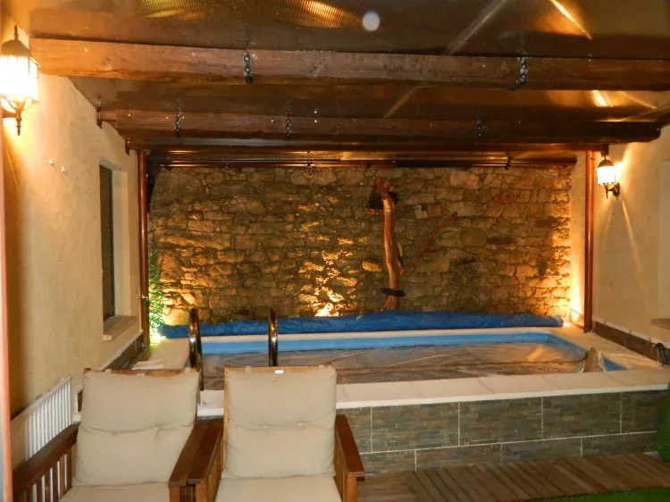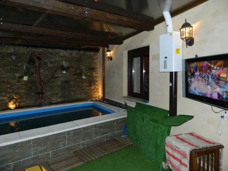 Tiene piscina climatizada en el patio interior pequeña y coqueta, con barra bar para disfrutar de un baño calentito, es opcional. Disponemos de barbacoa, en el patio exterior.