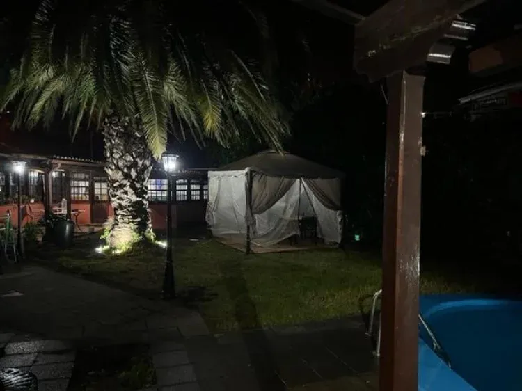 La casa cuenta con una amplia zona ajardinada con piscina, barbacoa, y cocina independiente para la piscina ,con baño independiente para el uso de las zonas exteriores, diferenciando los espacios.