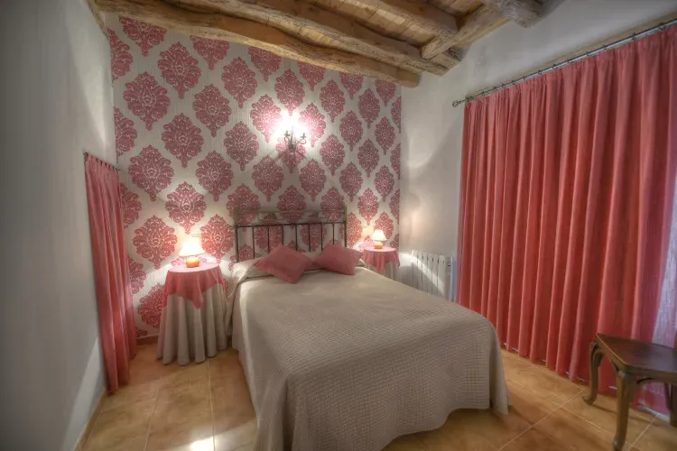 Inspirados en una decoración de estilo romántico con atrevidos toques de color. La cama de matrimonio, de 1,50 m. de ancha. Colchas en colores neutros y cojines a juego con paredes, complementan la decoración de este cuarto.