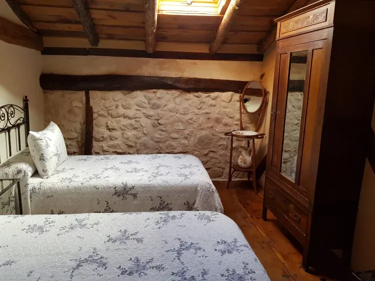 El dormitorio del aguamanil tiene con dos camas individuales (90x190), mesilla, armario, aguamanil con jarra, y descalzador de forja.