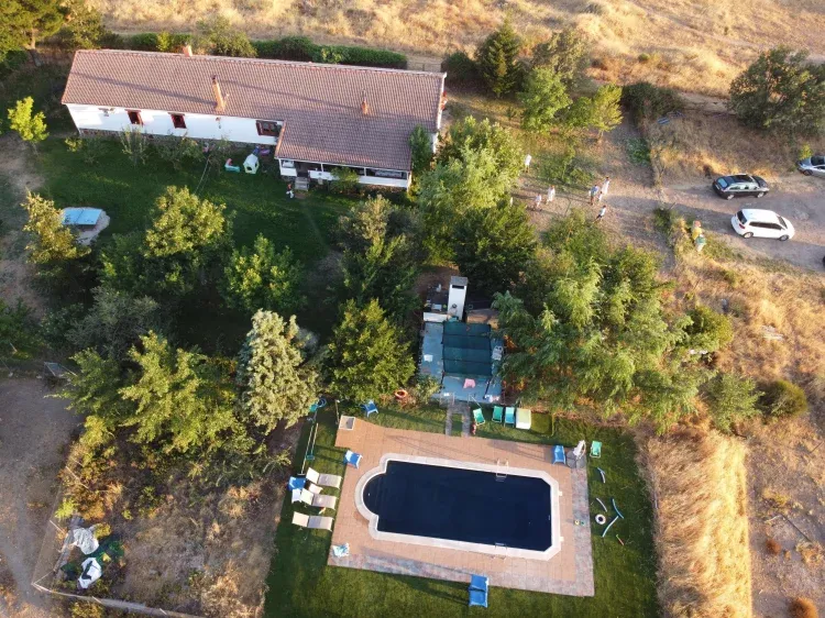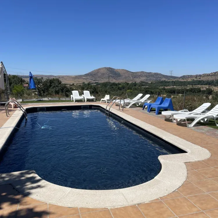Sin duda, cabe destacar la magnifica piscina, su agua es de color negro. Lo cual consigue entre 5° y 6° grados más de temperatura, en la Sierra de Madrid que se caracteriza por su baja temperatura y una altitud de 1350 metros.
