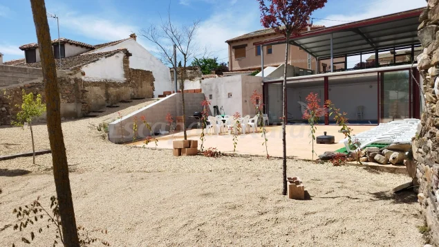 La vía verde pasa al lado de la casa. El pueblo es pequeño pero muy bonito, con elementos restaurados en las calles como una cosechadora, tiene una pequeña laguna con patos y ocas y columpios en la zona de la plaza.