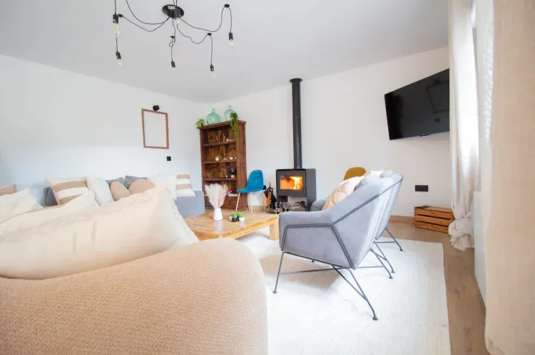 La casa cuenta con estufa de leña en el salón, futbolín, juegos de mesa, barra de sonido, wifi, zona chill out con brasero de exterior, mesa y sillas de exterior, barbacoa, etc.