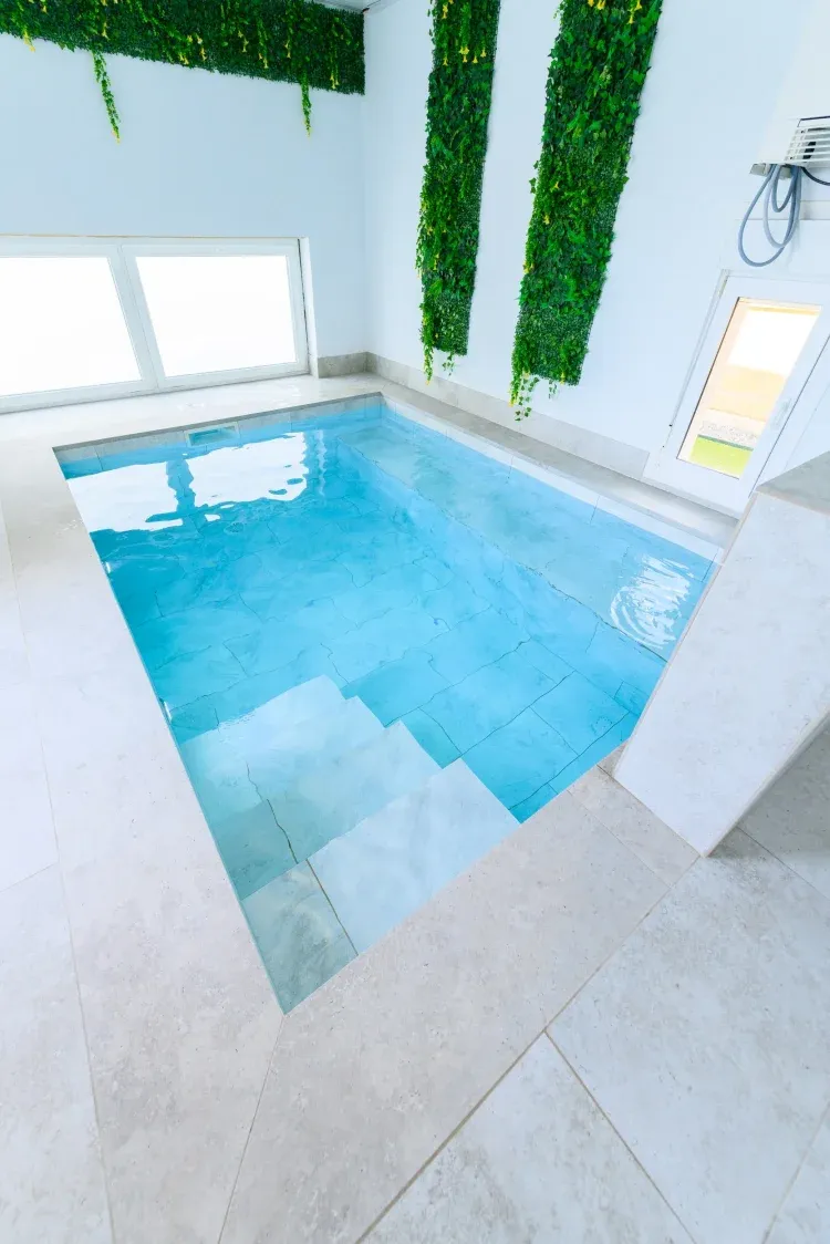 Con capacidad para alojar grandes grupos, nuestra villa cuenta con una piscina climatizada y agua salina dentro de la casa (con banco porcelánico interior y una cascada), un gran salón con chimenea, un comedor con pantallas de tv grandes y un gran cenador acristalado con vistas a la sierra.