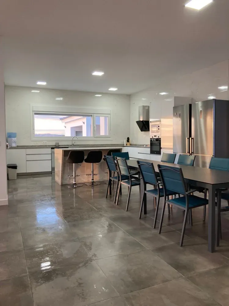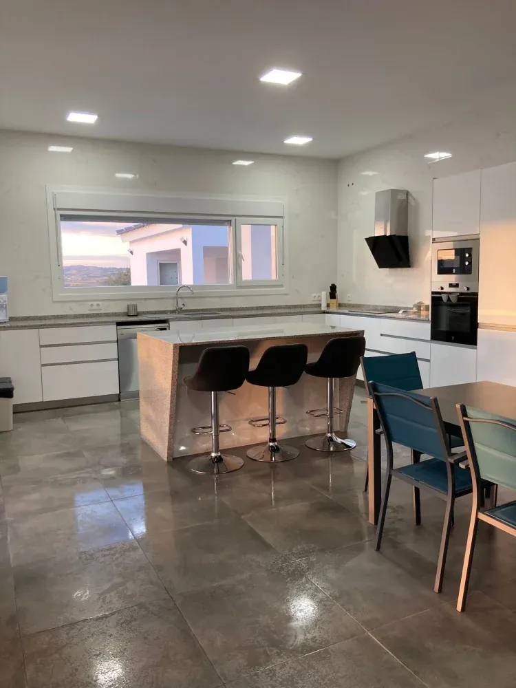 Gran cocina moderna, abierta y completamente equipada con: