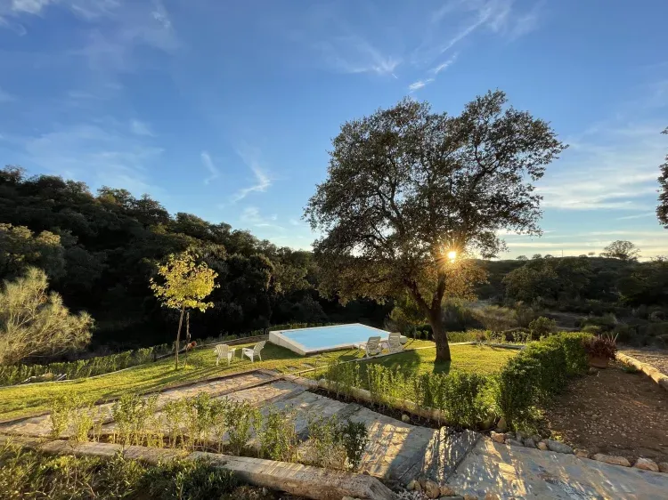 La finca cuenta con una extensión privada de mas de 10 hectáreas que hacen las delicias de sus huéspedes, el cortijo se sitúa al oeste, a los pies del rio Guadiamar, donde localizamos una reciente construcción que mantiene un marcado estilo andaluz. En la zona central se sitúa un amplio patio de caballos protegido por toda la zona destinada a vivienda, en sus exteriores se disponen amplias terrazas con unas vistas únicas, así como toda una zona ajardinada con piscina.